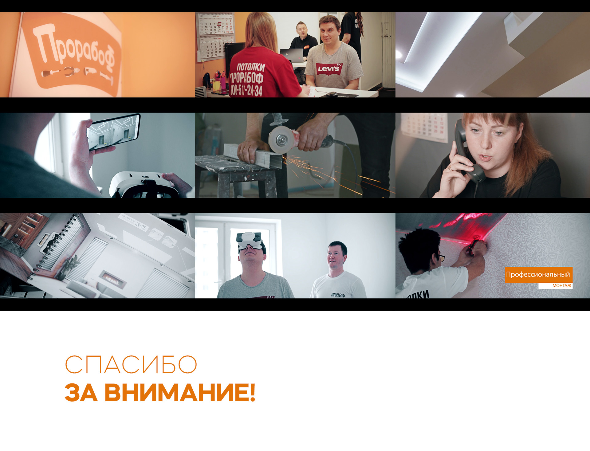 Перед агентством была поставлена задача сделать три видео ролика: для направления потолков от "Прорабоф" и видео с интервью для хантинга сотрудников.